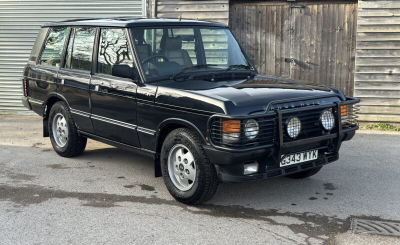 Introducing the epitome of timeless elegance and unmatched luxury – the Range Rover Classic in Bulgar Black. This prestigious vehicle, a genuine Vogue SE model, boasts extraordinary features that define its class. A new black headlining and Yokohana Geo Lander tires have recently been added, ensuring both style and performance.